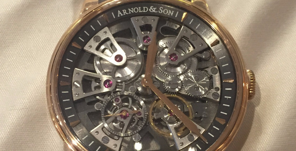 今日下午,ARNOLD & SON於西營盤舉辦了一場傳媒午宴及發佈會,除了帶來多款今年Baselworld的新作包括UTTE Skeleton以及Nebula等等之外,品牌的機芯研發部主管Dr. Sébastien Chaulmontet更親身來港,講解品牌的機芯的設計特點及歷史沿革。此外,發佈會上Dr.Chaulmontet更向傳媒介紹了ARNOLD & SON旗下的另一品牌ANGELUS今年推出的新腕錶,其中U30 Tourbillon Rattrapante搭載陀飛輪及雙追針,加上其鏤空設計,讓自製的A-150機芯可被一覽無遺!