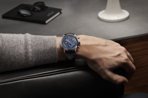 BAUME & MERCIER為Classima系列增添全新男裝款式,分別為全日曆計時碼錶、兩地時區腕錶以及一款小秒針款式。三款全新Classima系列腕錶均配以42毫米精鋼錶殼,錶盤則為中央點綴有「麥粒」飾紋的深藍色錶盤。