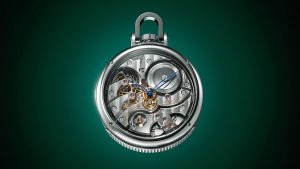 手動 LFT AU14.03 機芯將錶盤七種迷人的動感效果和十五個活動元素活靈活現地上演,機芯為路易威登自主研發,是 La Fabrique du Temps Louis Vuitton 製錶工坊迄今所打造的最複雜機械機芯。機芯刻有 LFT 印記並配備三問報時功能,可報出整點、刻鐘和分鐘。其中一些設計則是向悠久的懷錶歷史致敬。懷錶最值得注意的歷史是陀飛輪的問世,其為鐘錶界最受歡迎的機械裝置之一,最初是為了提高懷錶的精準度而發明。同時,兩根指針裝置在錶背上,而不在錶盤正面,讓錶盤上的微縮劇院充分展露非凡魅力——這個小細節也是另一個懷錶歷史的致敬元素。