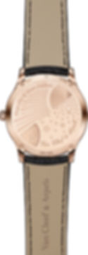 這只錶的另一個重點是它把複雜功能做得很安靜。跳時與逆跳分針本來就是非常有戲劇張力的機構,尤其當分針瞬間回彈、小時數字同步跳換時,那種機械節奏本身就足夠吸引人。但 VAN CLEEF & ARPELS 並沒有把這種動態張力外顯化,反而用極簡的表面設計去收束它。於是,這只錶的魅力不在第一眼就把所有內容端出來,而是在佩戴和使用中慢慢浮現。你先感受到的是整只錶的穩重與細緻,之後才會意識到,原來它在分針歸零與小時跳換的瞬間,已經悄悄完成了一次很精彩的機械表演。而這份克制,也延伸到了操作方式。腕錶以單一錶冠同時完成上鍊、兩地時區調校與分針設定,將原本可能繁瑣的功能操作整合在一起。這件事的重要性,在於它讓雙時區腕錶真正回到日常佩戴的層次。畢竟,對經常往返不同城市的人來說,雙時區功能的價值不只是存在,而是要能方便使用。品牌把這件事情做得更直觀,也讓這只錶不只是漂亮,而是實用。